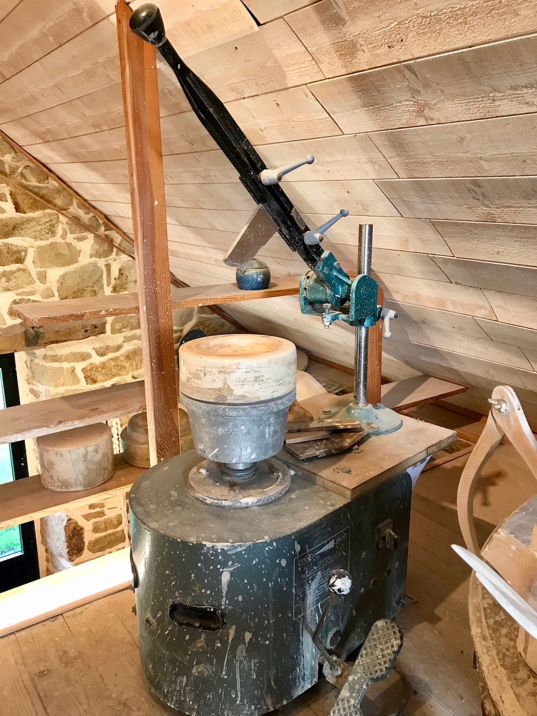 Nous avons été contacté par Oliver d’Esquibien, potier ayant cessé son activité depuis quelques années et souhaitant vendre son matériel. Au téléphone, Gildas répète ses mots qui me font rêver…si si, je vous assure : Boudineuse, mieux encore Boudineuse Désaéreuse ! Extrudeuse murale avec embouts, Croûteuse, Tour…je sais, j’en ai un mais bon… mais aussi Calibreuse, Four Vertical électrique, Four à gaz, le tout avec de nombreux petits outils, des moules, des rondeaux et des matières premières !