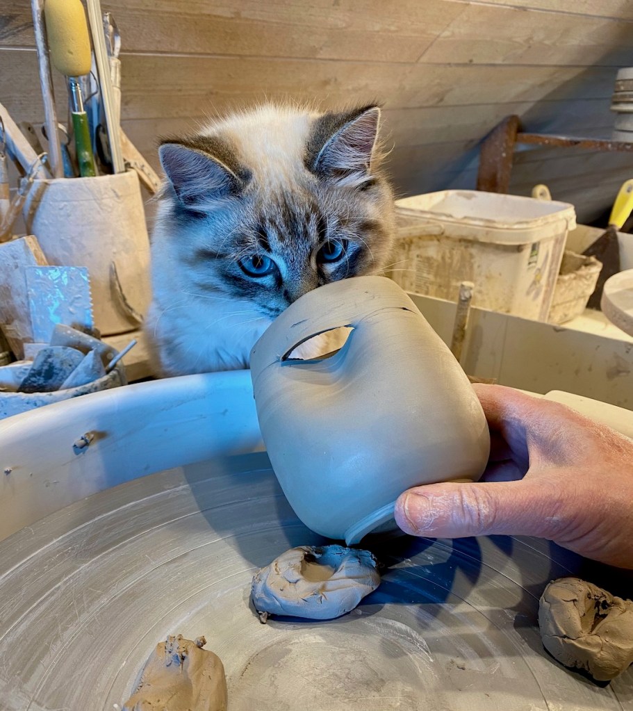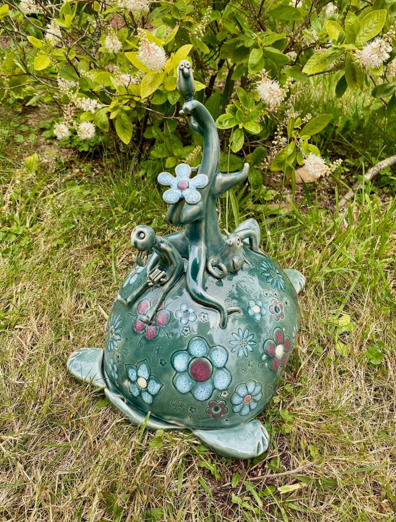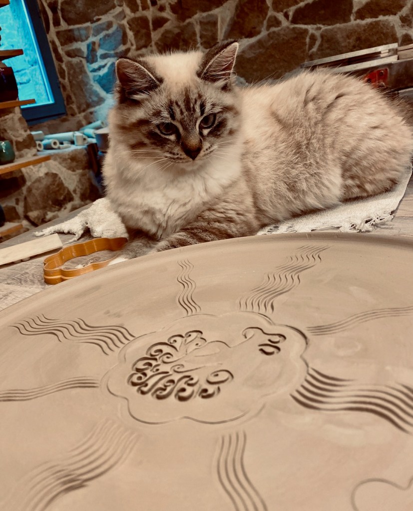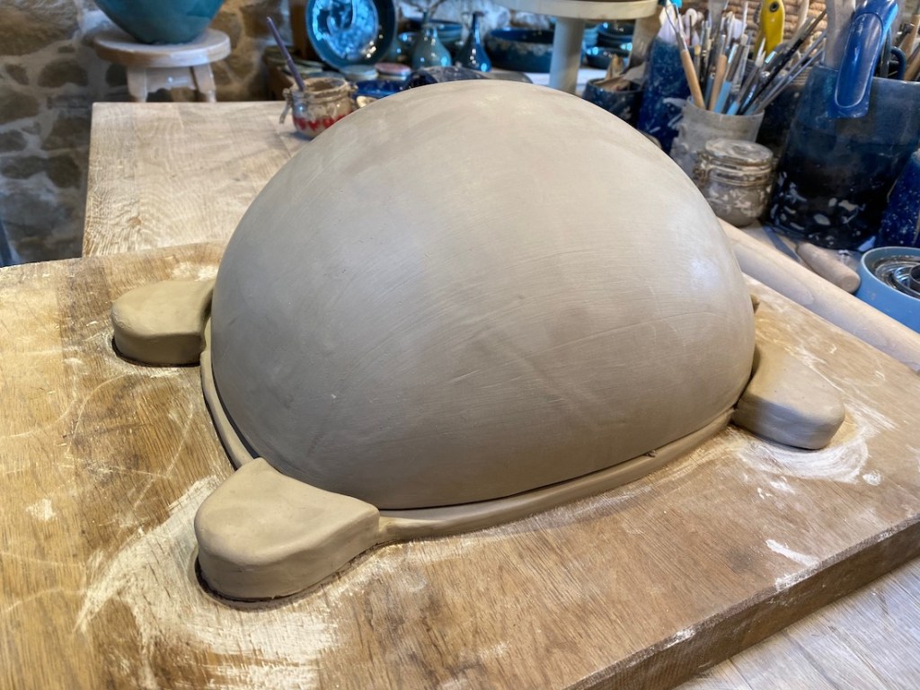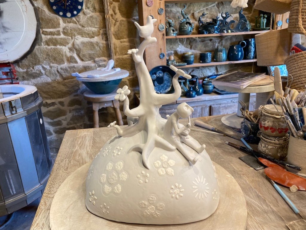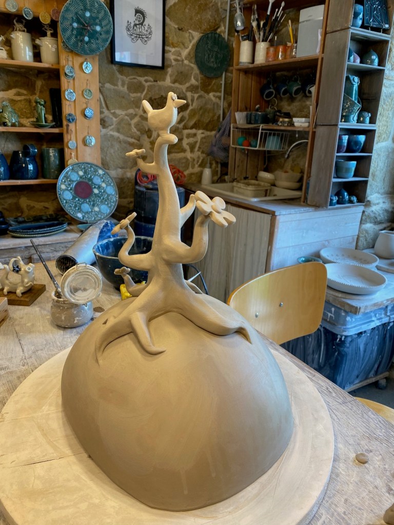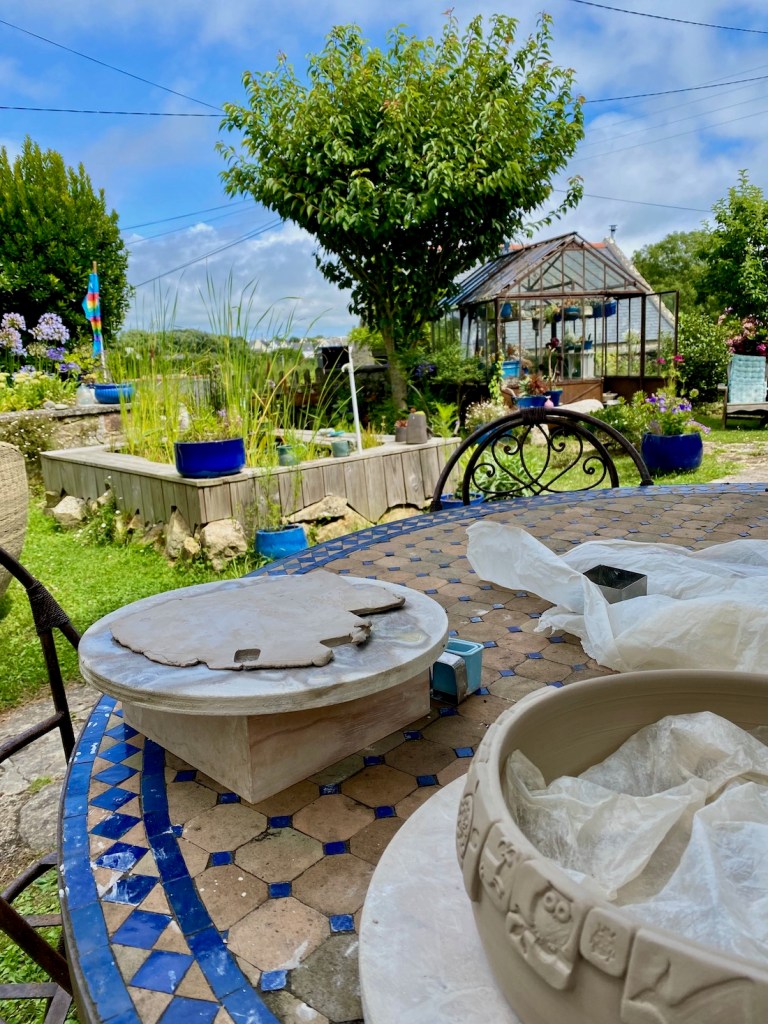 En plein coeur de l’été 2024, nous avons cru être contraints de créer une pièce spécialement conçue pour participer à une exposition à Esquibien. Nous avons donc décidé de la réaliser ensemble, pour partager le travail en cette période particulièrement intense pour chacun de nous mais aussi pour la rendre forcément unique puisqu’il me semble que nous n’avons dû réaliser pas plus de cinq pièces utilitaires conjointement (tournage et déco).
