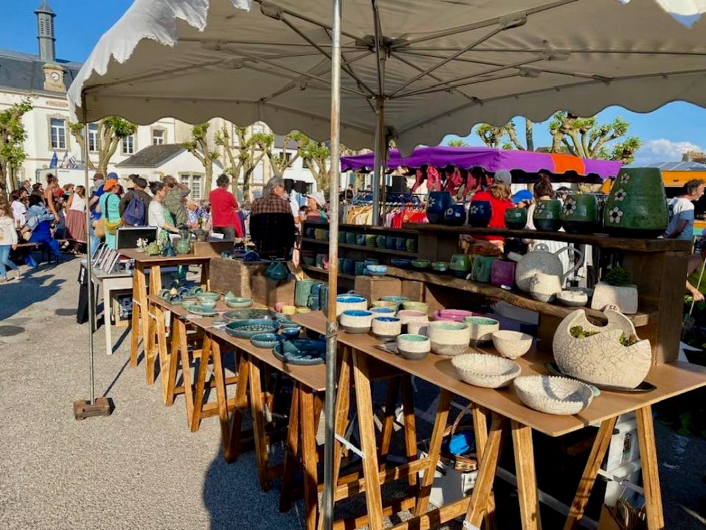 Tant d’harmonie nous a sans doute convaincus de nous débarrasser du plastique de nos tables d’exposition. Nous avons donc rapidement opté pour le moins pratique, en terme de poids et de rangement dans la voiture, mais mazette, quelle beauté que l’association du bois et de la céramique !