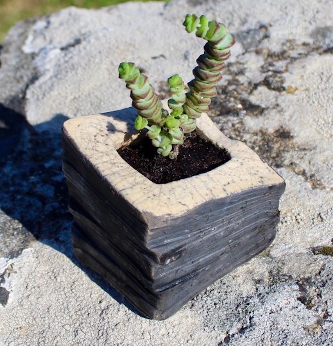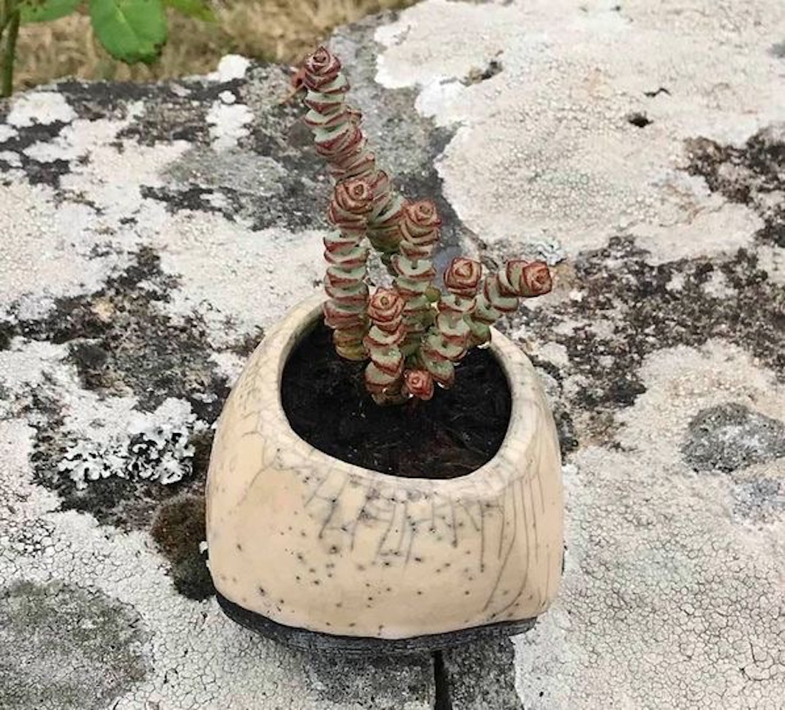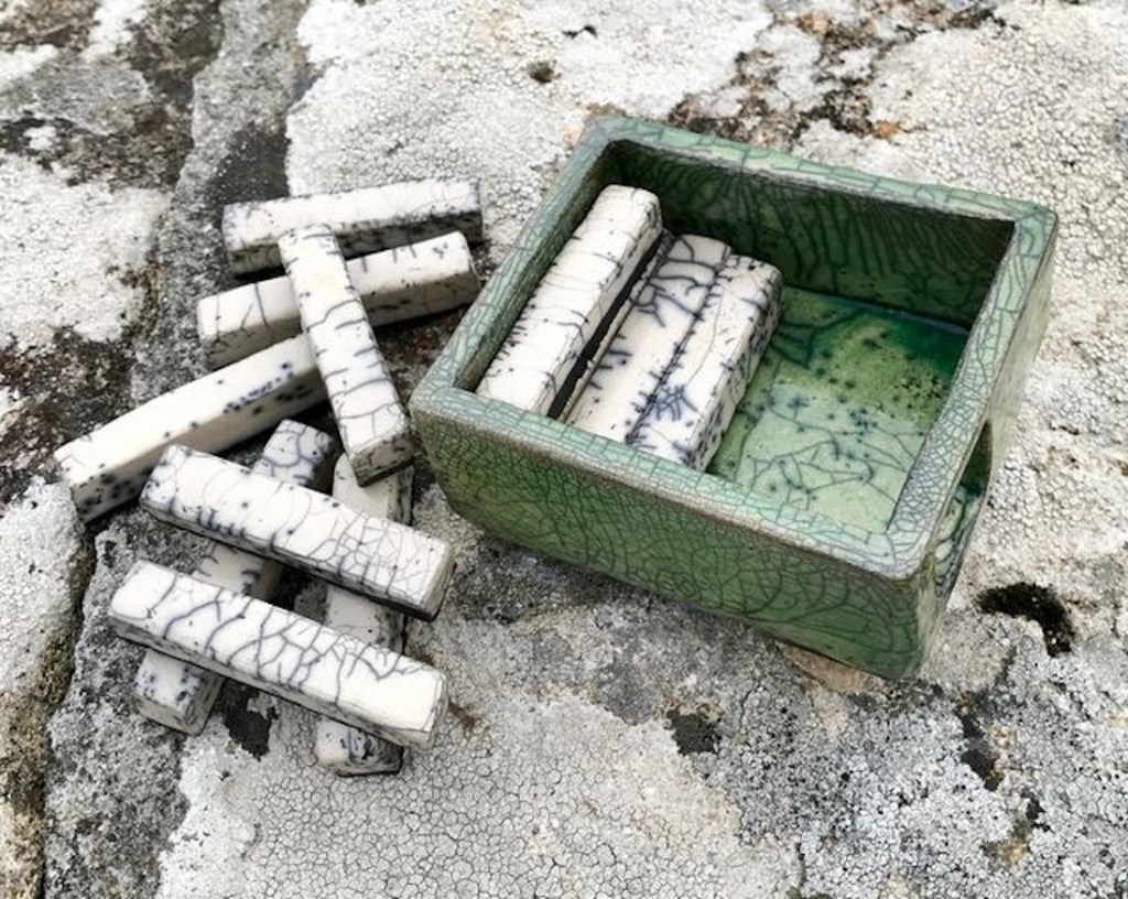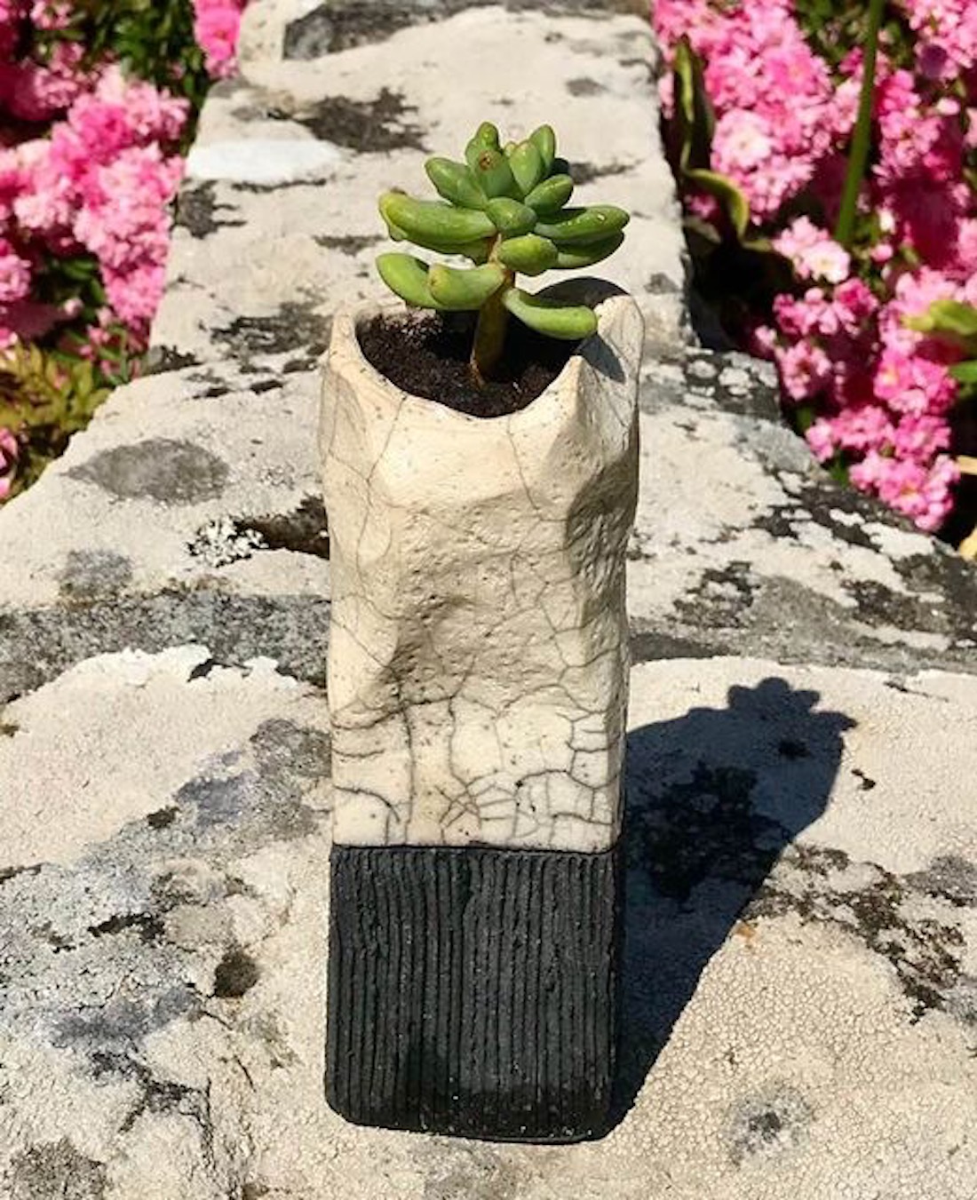 Le raku est une technique cherchant à provoquer des craquelures sombres dans l’émail. Je ne vais pas ici vous faire un cours sur ce savoir-faire ! Il y a déjà toutes les informations utiles sur le net ! Sachez cependant qu’il est interdit de créer des pots en raku pour un usage alimentaire. Vous saurez bientôt pourquoi.