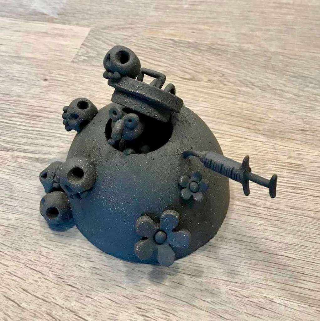 Une fois biscuité, PseudoVase-Fleur passe par l’étape de l’émaillage puis direction le four à Raku avec ses copines.