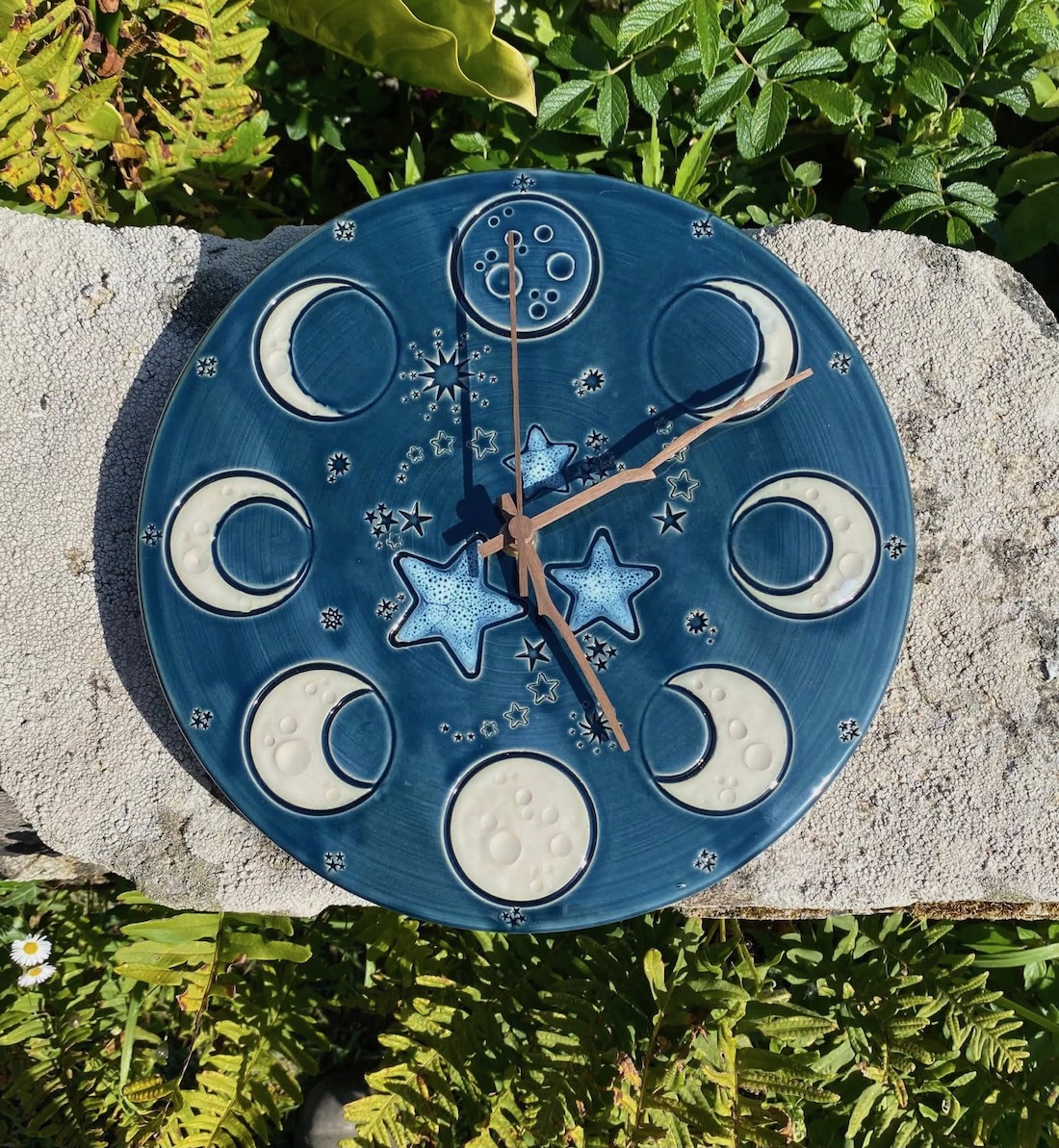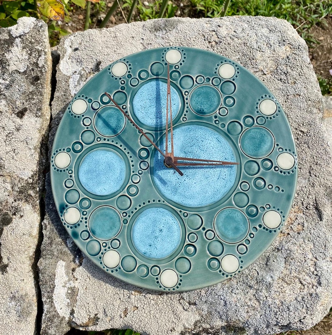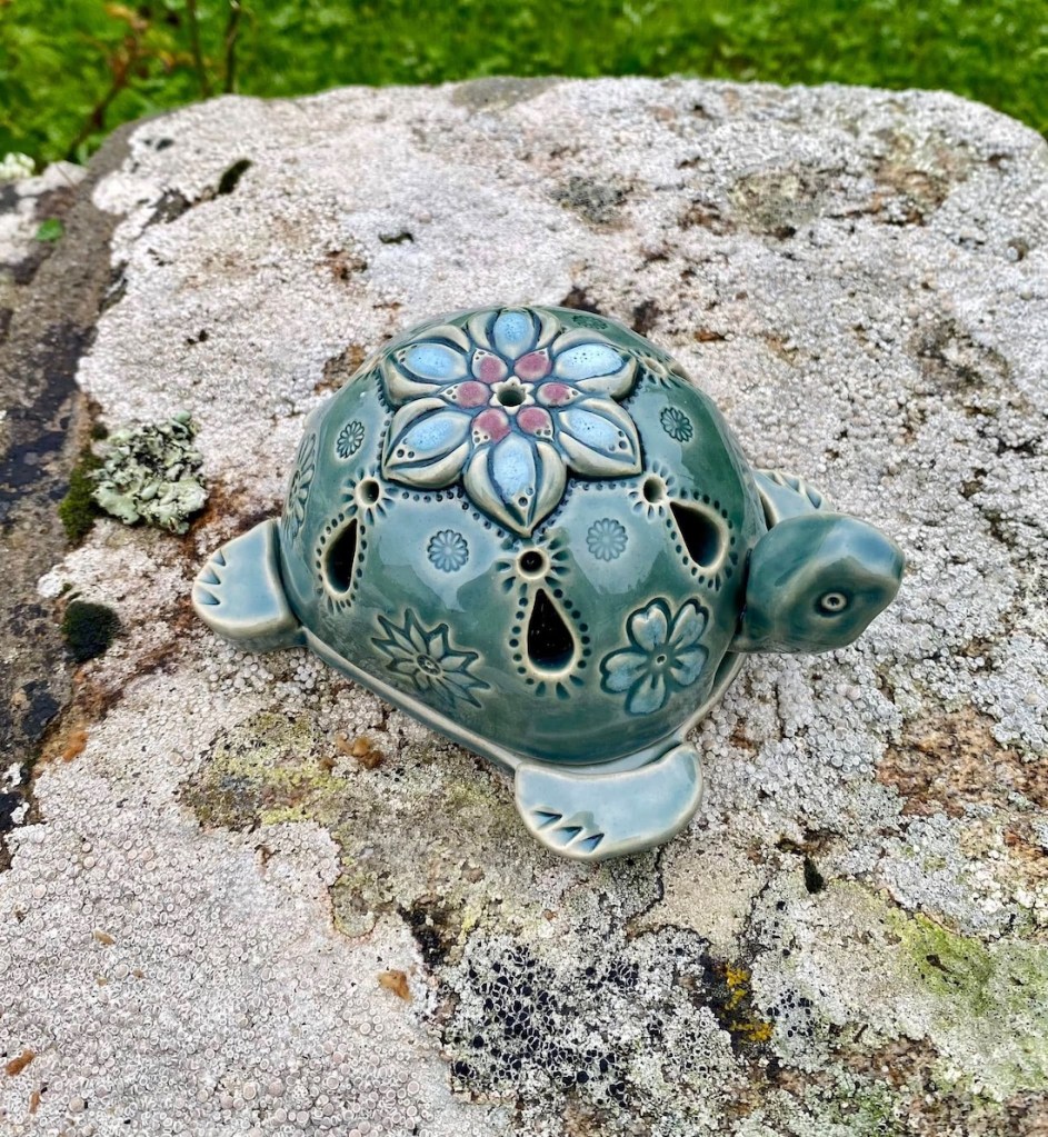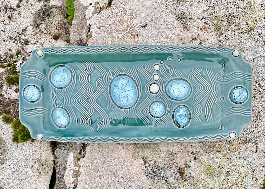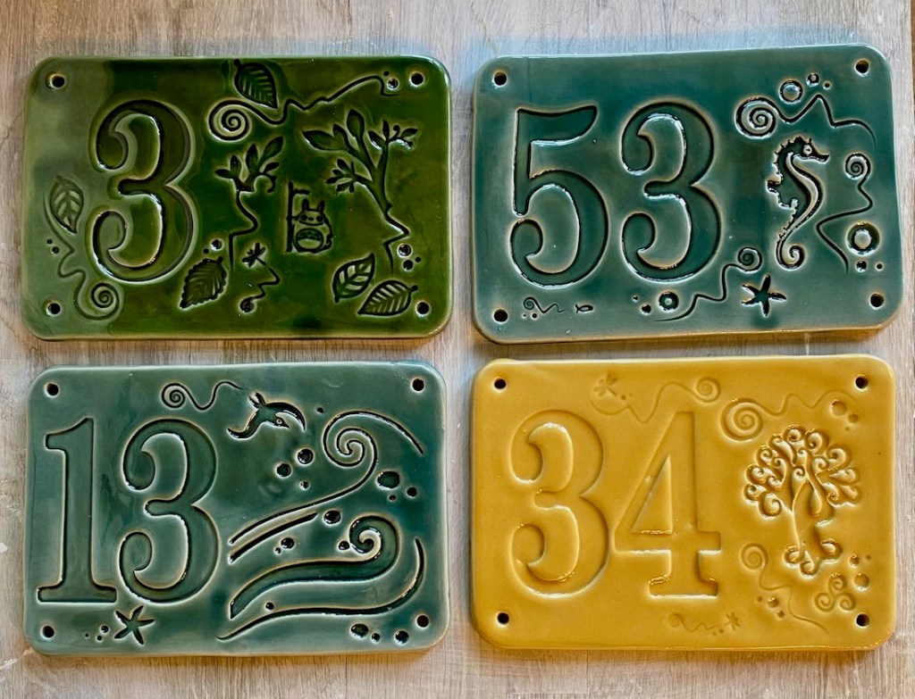 Ensuite les créations de 2022, avec pour nouveautés : l’utilisation du Vert Mousse, du Noir Ardoise, du Sable, quelques essais en porcelaine, des bijoux, des totems de têtes et des assemblées de bonzommes sur galet !