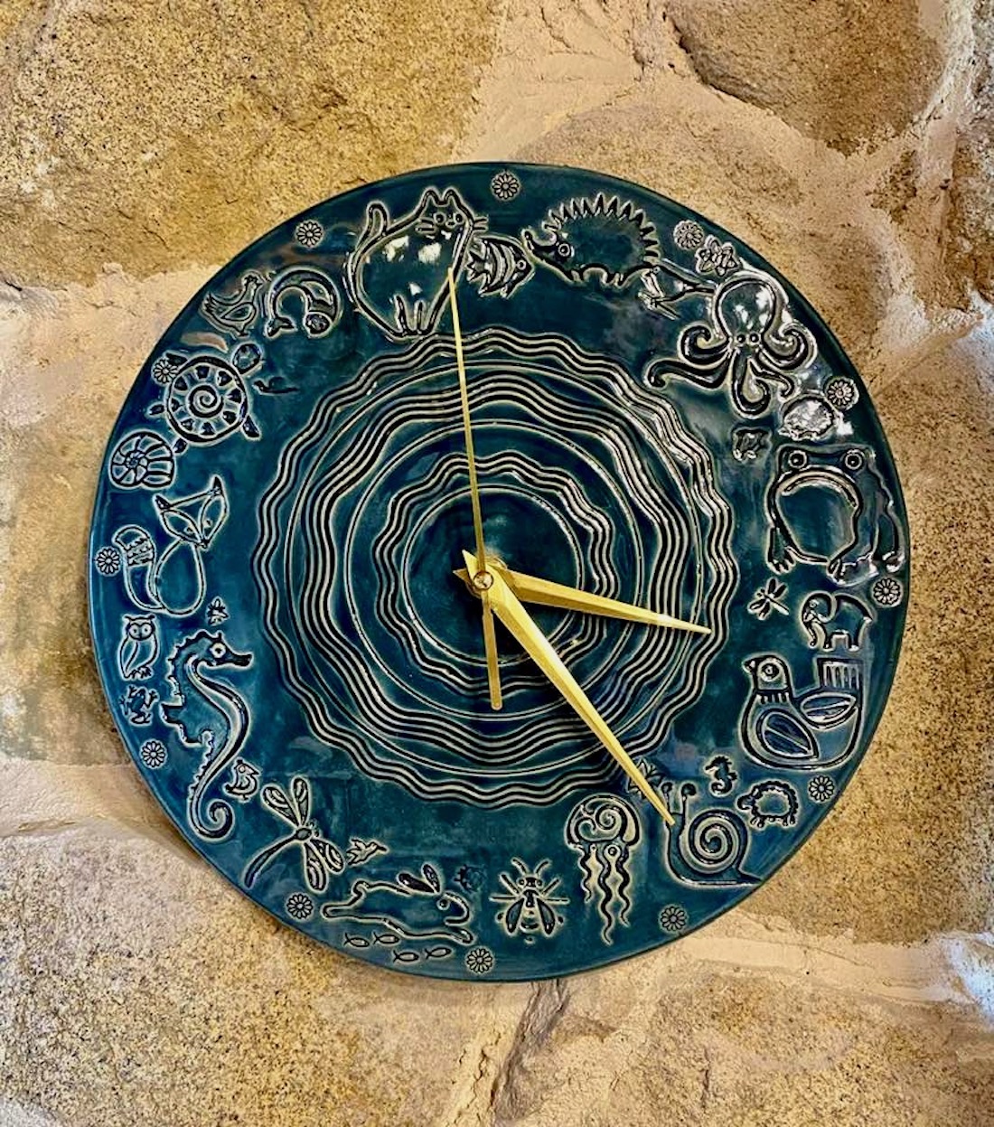 Une par une, les pièces sont alors sorties du four et posées au sol : le choc thermique fait craqueler l’émail en surface (ou le pot… ), on l’entend scintiller, tintinnabuler.